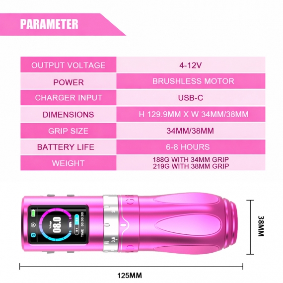 - ADJUSTABLE STROKE - To meet the needs of different tattoo styles, we have a total of 7 strokes: 2.4mm, 2.7mm, 3.0mm, 3.3mm, 3.6mm, 3.9mm, and 4.2mm. It is so easy to find your favorite stroke.