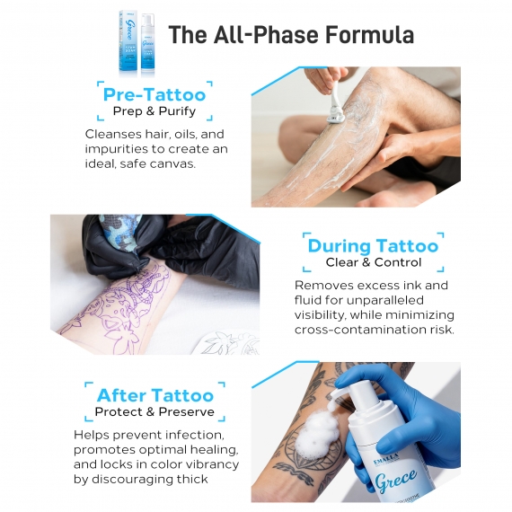 Enriched with Witch Hazel and Aloe Vera, it helps calm irritation and provide comfort, making it suitable for sensitive skin and tattoo preparation and aftercare.